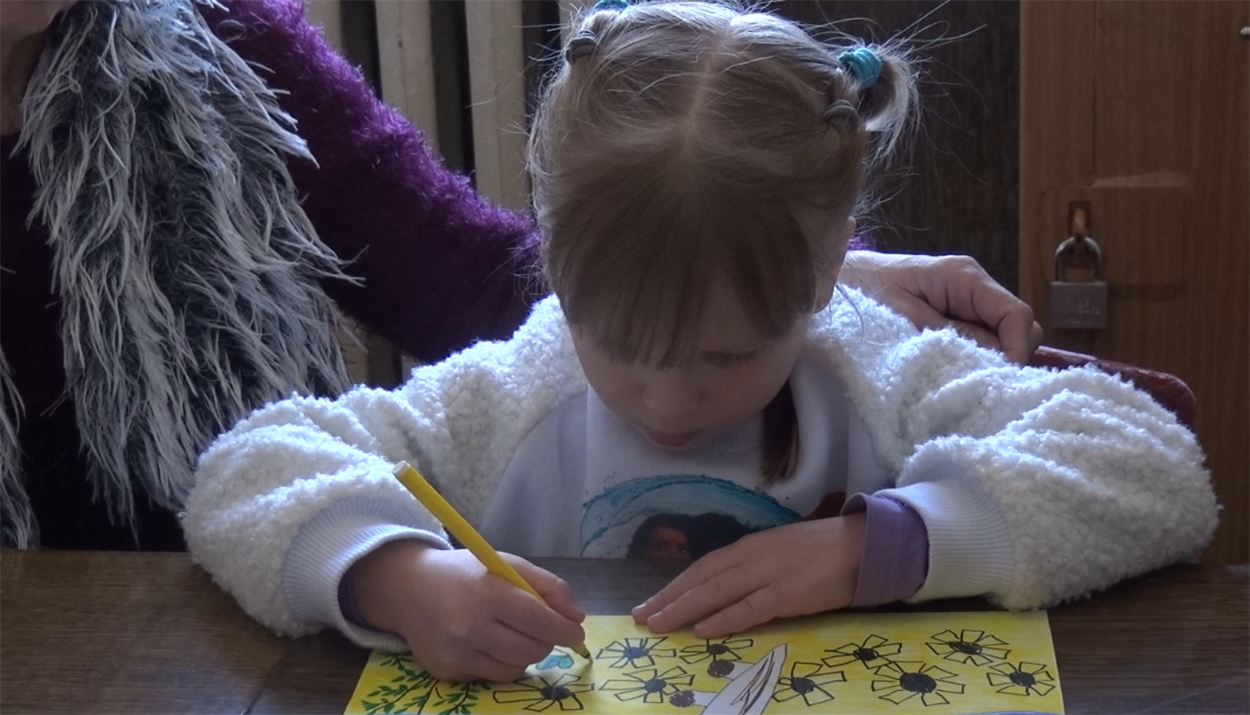 «Я дуже люблю малювати нашу Україну і наших військових. Моя мрія - щоб війна закінчилась», - говорить дівчинка.