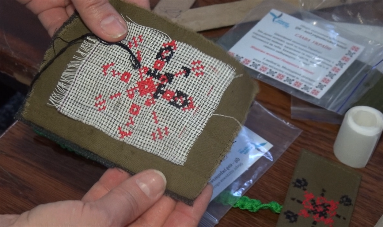 Окрім цього діти вишивають шеврони для захисників. На них вони відображають закодовані символи-обереги та імена воїнів.