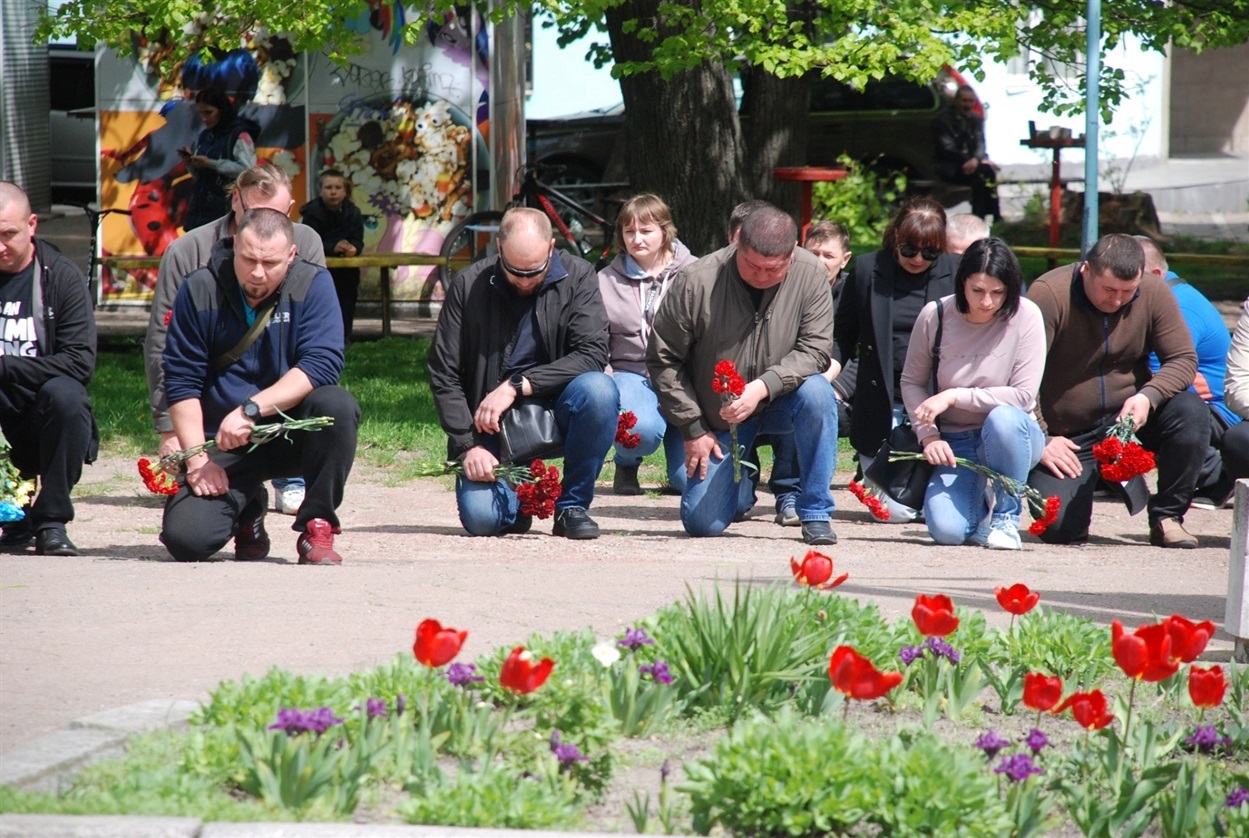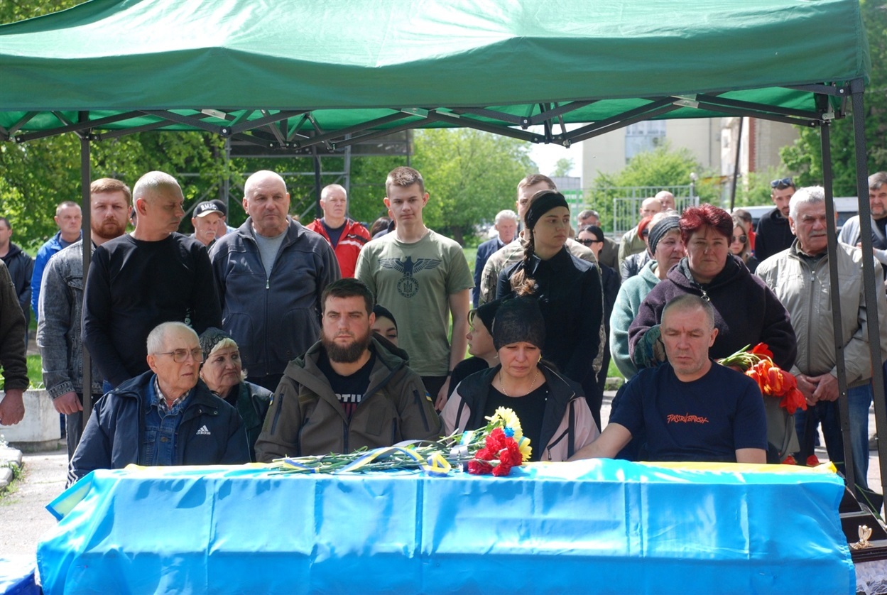 На знак подяки за подвиг нашого земляка, за ту жертву, яку він приніс, захищаючи територіальну цілісність і суверенітет України, учасники жалобної церемонії стали на коліна.