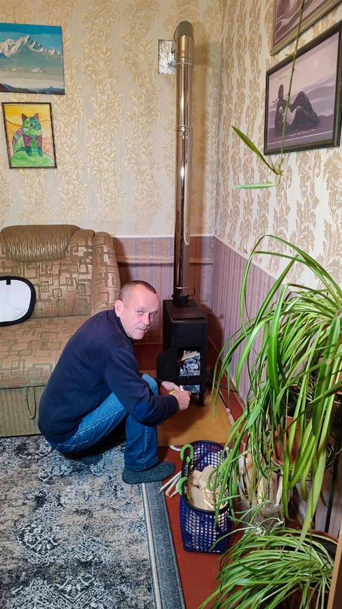 Олександр Іванович працює кочегаром, тому знає техніку безпеки для експлуатації таких печей. Стіни і підлога будуть огорожені. Поки дрова горять, вікно кімнати привідчинене.
