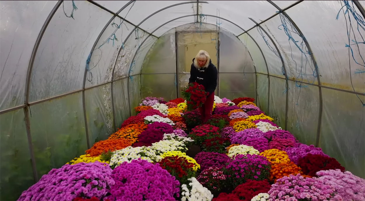 «У меня была такая мрія зібрати велику колекцію хризантеми мультифлора. Я зібрала зі всієї України: багато купувала сортів, кольорів. В тому році було 200 сортів мультифлори. В цьому році, навіть не можу злічити скільки у мене сортів», — ділиться квітникарка, показуючи на безкраї квіткові килими.