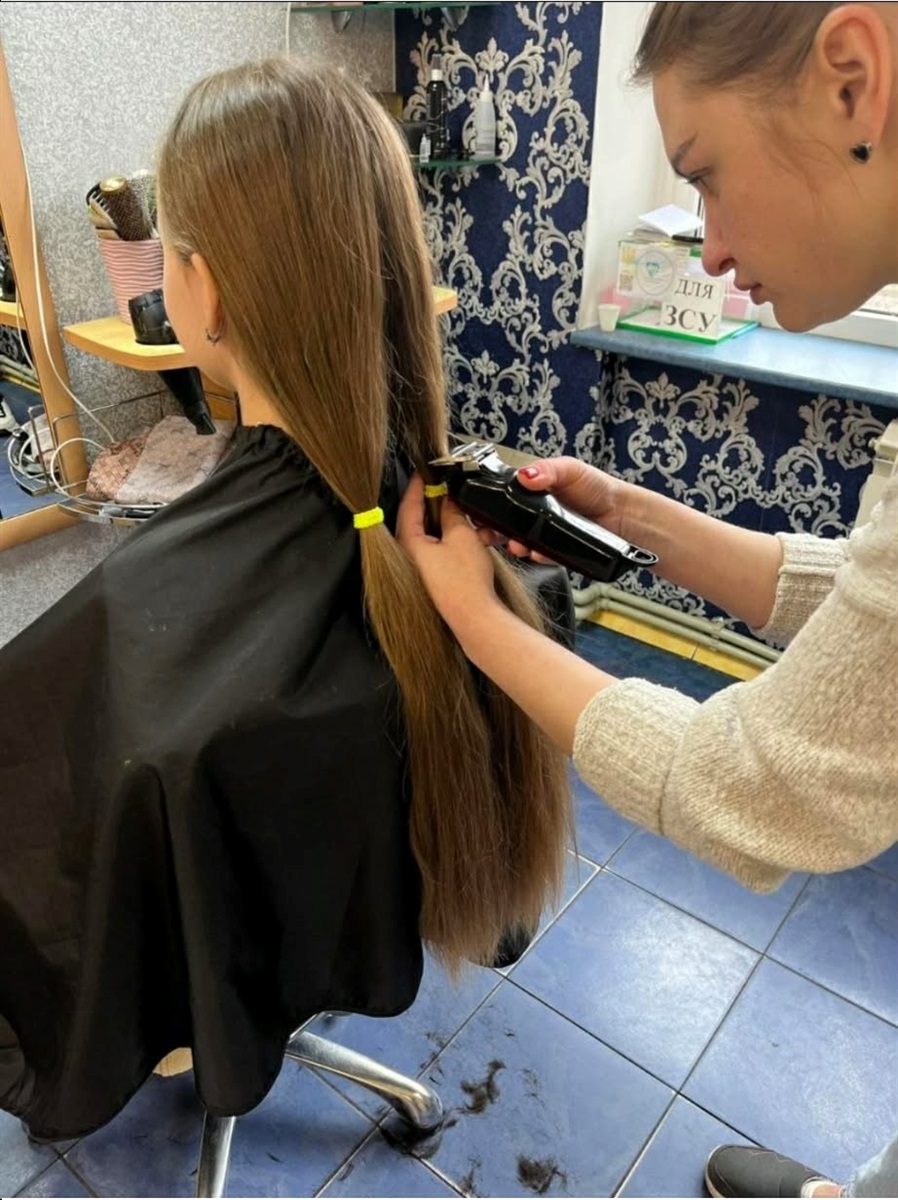 “Олександра гортала інстаграм і побачила, що дівчатка відрізають своє волосся, продають його і так допомагають захисникам. Олександра зрозуміла, що може допомогти армії також таким чином,” — ділиться пані Тетяна.
