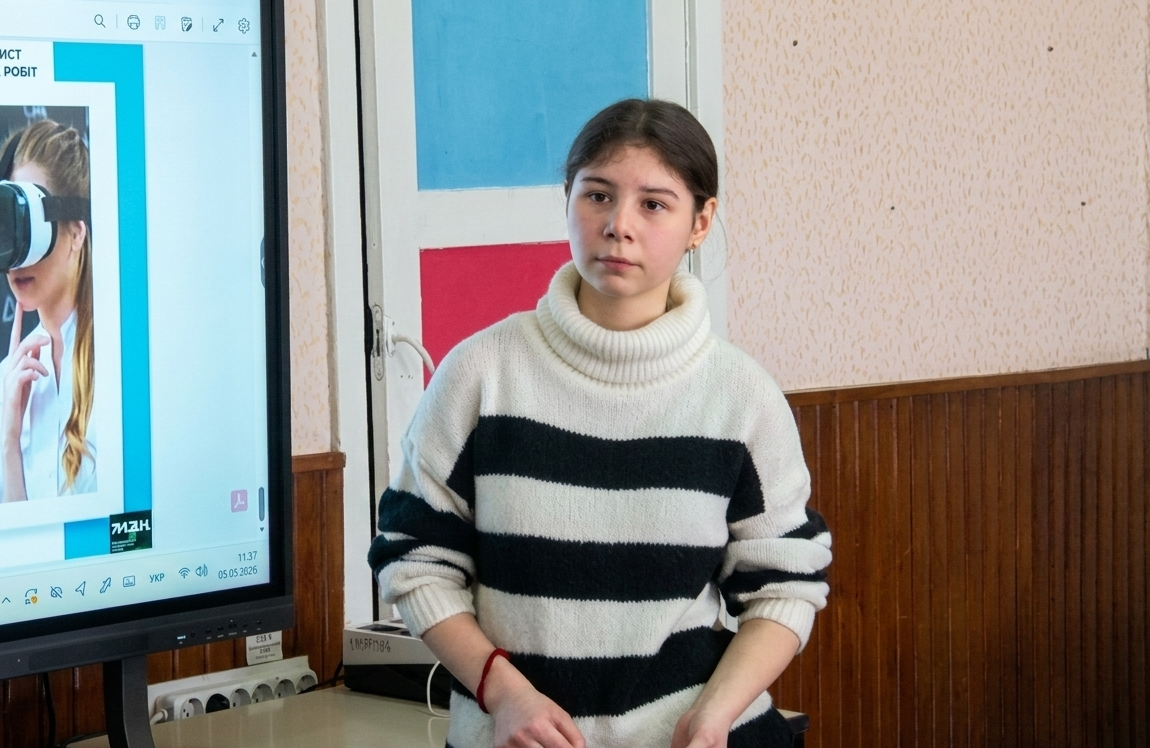 Одним із найбільш технологічно складних проєктів стала робота дев'ятикласниці Поліни Марченко, яка посіла ІІІ місце. Вона представила дослідження щодо створення інтерактивного середовища для віртуальної реальності з використанням рушія Unreal Engine 5. Поліна детально описала свій задум, підкресливши, що метою роботи було створення віртуального простору для взаємодії з об'єктами в режимі реального часу та експериментальне доведення можливості розробки функціонального цифрового двійника автомобіля. Розповідаючи про практичне значення свого дослідження, учениця зазначила: «Актуальність цього дослідження — це зростаючий інтерес до технологій цифрових двійників Digital Twin, потреби у високореалістичних інтерактивних симуляціях та безпечне тестування складних об'єктів. Практичне застосування цього проєкту можливе в освіті та медицині як тренажери для хірургів, у військовій сфері для відпрацювання бойових сценаріїв, а також у дизайні, архітектурі та авіації. Поєднання технологій Lumen та Nanite в Unreal Engine 5 дозволяє досягти фотореалізму, необхідного для професійних симуляцій, що є економічно вигідним та значно підвищує ефективність у сучасному світі».